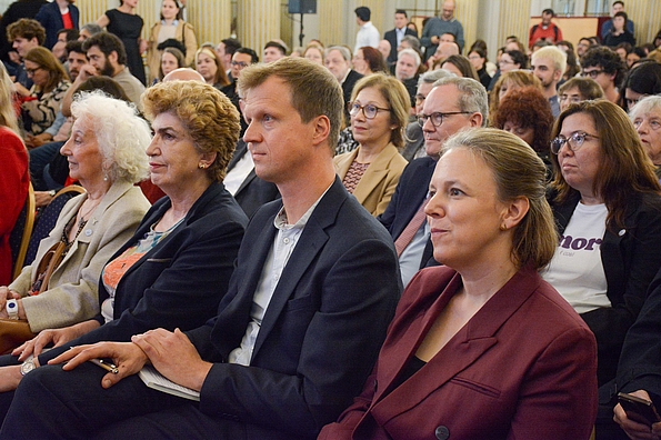 Lo de esta tarde ha sido una una cálida muestra de reconocimiento hacia la institución FES y entendemos que una institución siempre es la gente que la representa. Por ende, hoy también es un homenaje al equipo de Argentina, tanto los colegas que están aquí en el escenario como los que nos precedieron. No revelo demasiado cuando digo que, en la red global de la FES seguimos con admiración el trabajo innovador e inspirador de la FES Argentina y de la Revista Nueva Sociedad. Gracias, compañeras y compañeros, ¡por su dedicación y su gran compromiso! Y por coorganizar el evento de hoy. Para Sebastian y para mi, es un gran honor y un privilegio formar parte de este increíble equipo ahora.